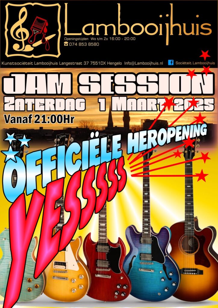 Neem je muziek instrument mee en kom lekker jammen! Of luister gewoon live music